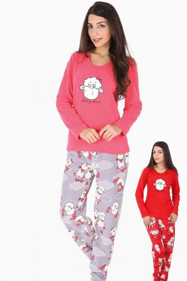 Жіноча піжама брюки кофта довгий рукав фліс червона купити в Україні