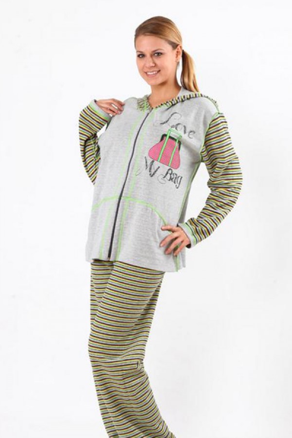 Жіноча піжама брюки кофта довгий рукав з капюшоном на блискавці двостороння купити в Україні