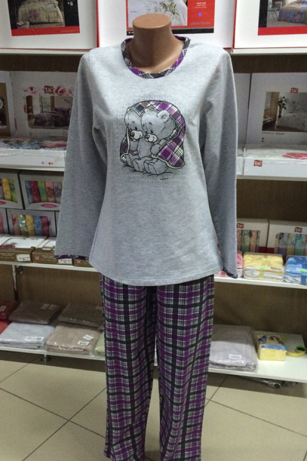 Жіноча піжама штани футболка довгий рукав на байці купити в Україні
