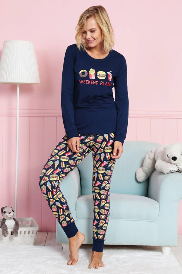 Жіноча піжама штани на манжетах кофта довгий рукав купити в Україні