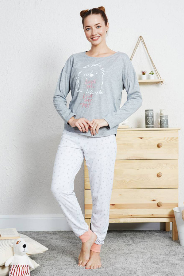 Жіноча піжама штани на манжетах кофта довгий рукав купити в Україні