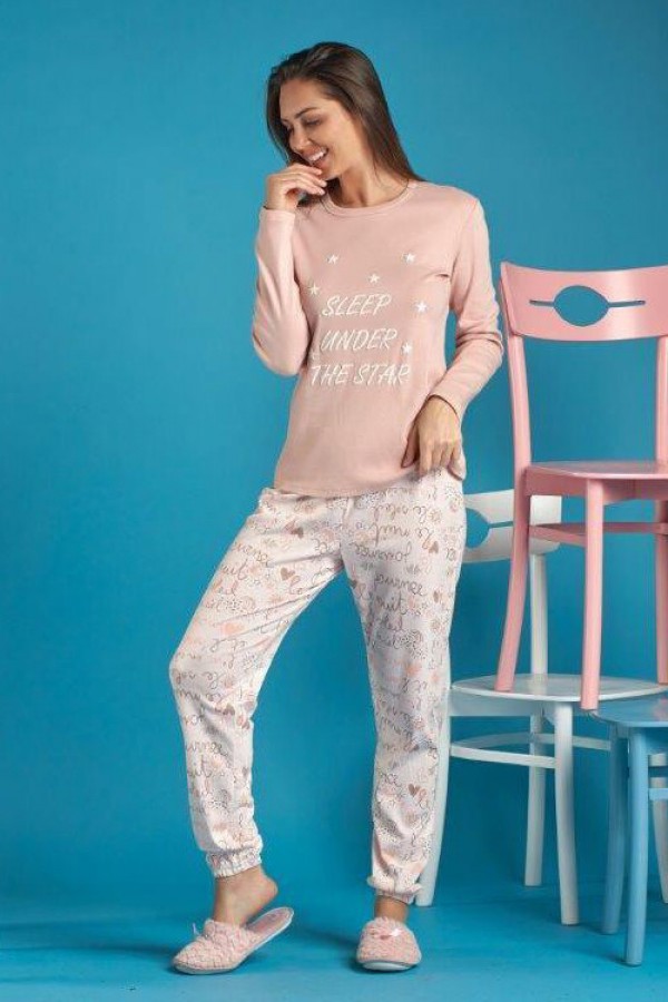 Жіноча піжама штани на манжетах кофта довгий рукав купити в Україні