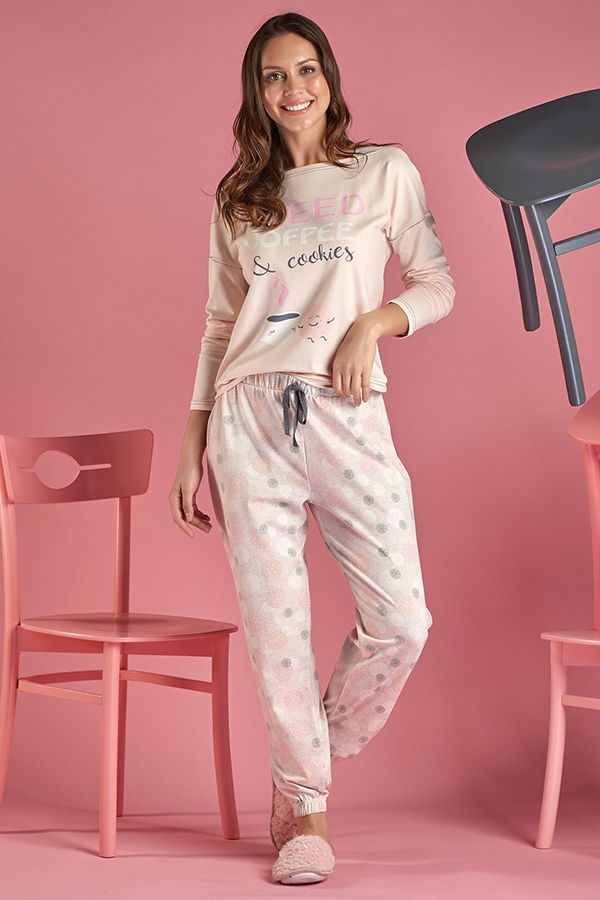Жіноча піжама штани на манжетах кофта довгий рукав купити в Україні