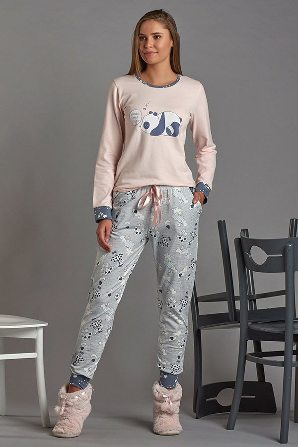 Жіноча піжама штани на манжетах кофта довгий рукав купити в Україні