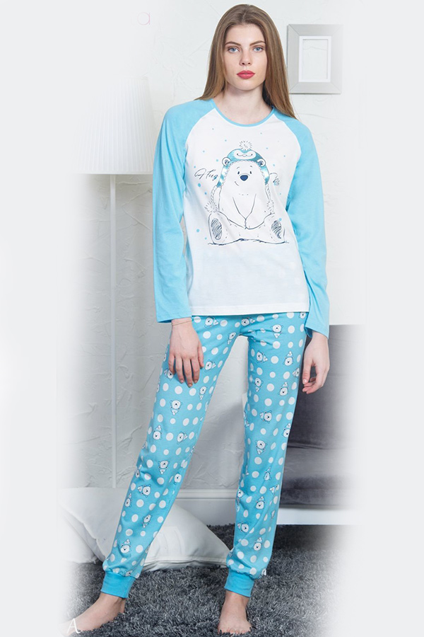 Жіноча піжама штани на манжетах кофта довгий рукав купити в Україні