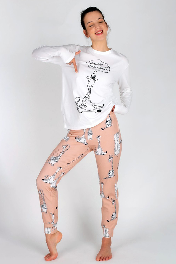 Жіноча піжама штани на манжетах кофта довгий рукав купити в Україні