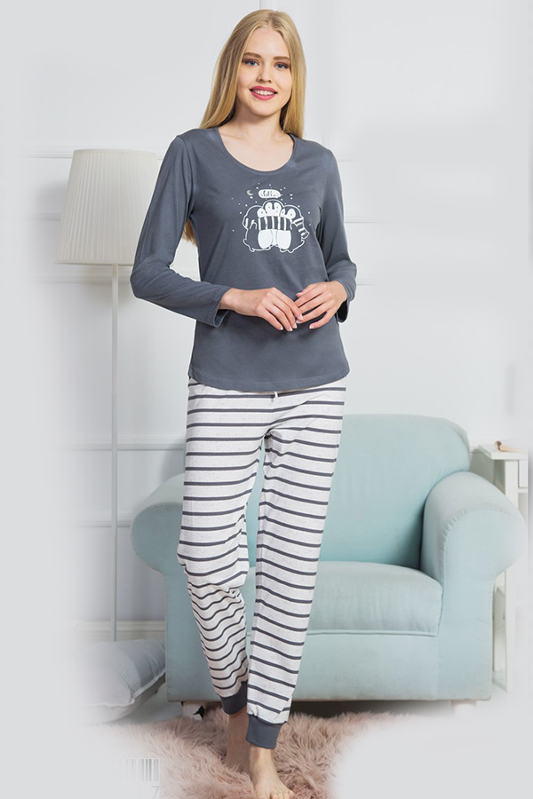 Жіноча піжама штани на манжетах кофта довгий рукав купити в Україні
