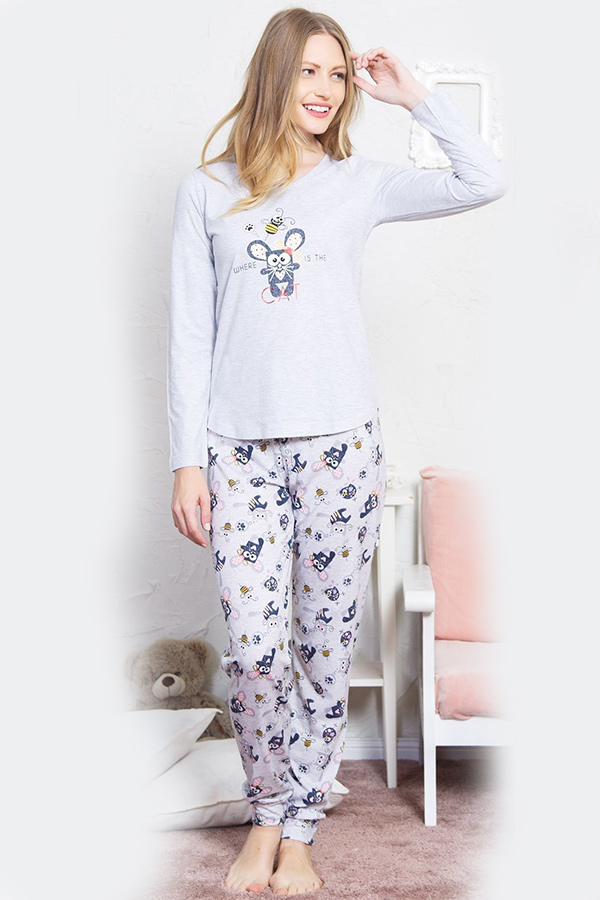Жіноча піжама штани на манжетах кофта довгий рукав купити в Україні