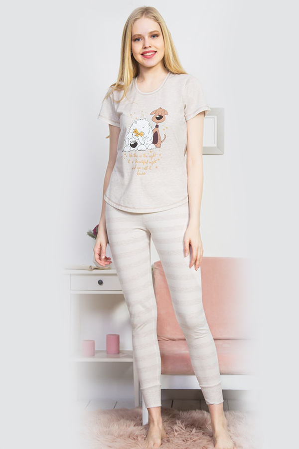 Жіноча піжама штани на манжетах кофта довгий рукав купити в Україні