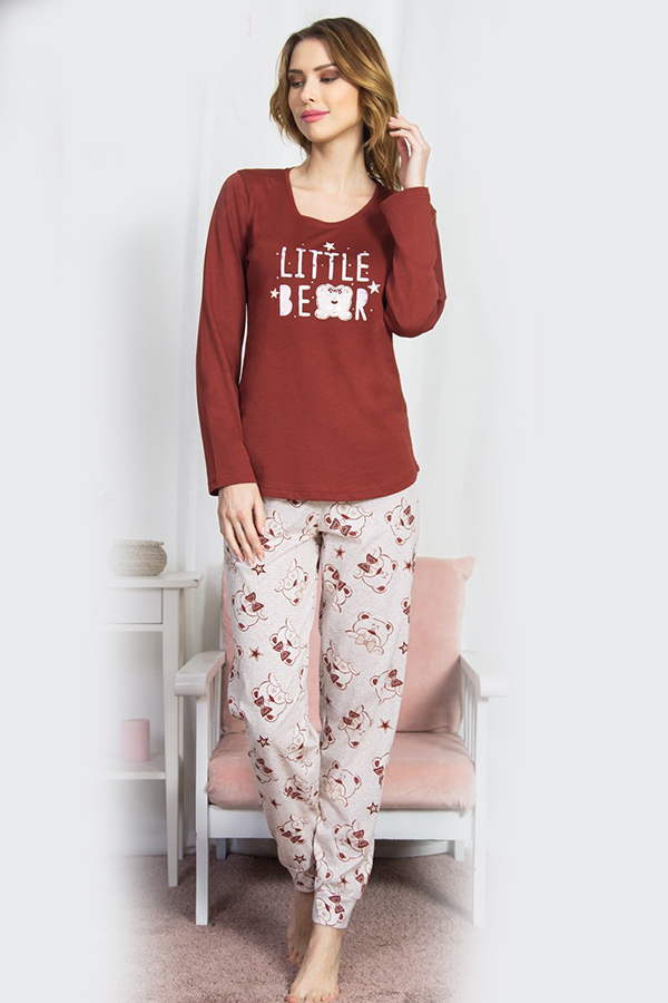 Жіноча піжама штани на манжетах кофта довгий рукав купити в Україні