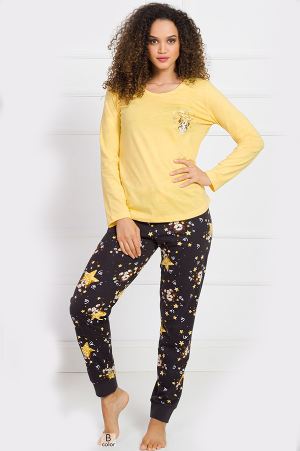 Жіноча піжама штани на манжетах кофта довгий рукав купити в Україні