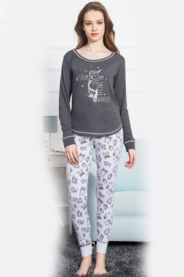 Жіноча піжама штани на манжетах кофта довгий рукав купити в Україні
