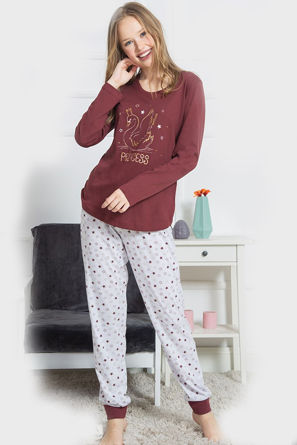 Жіноча піжама штани на манжетах кофта довгий рукав купити в Україні