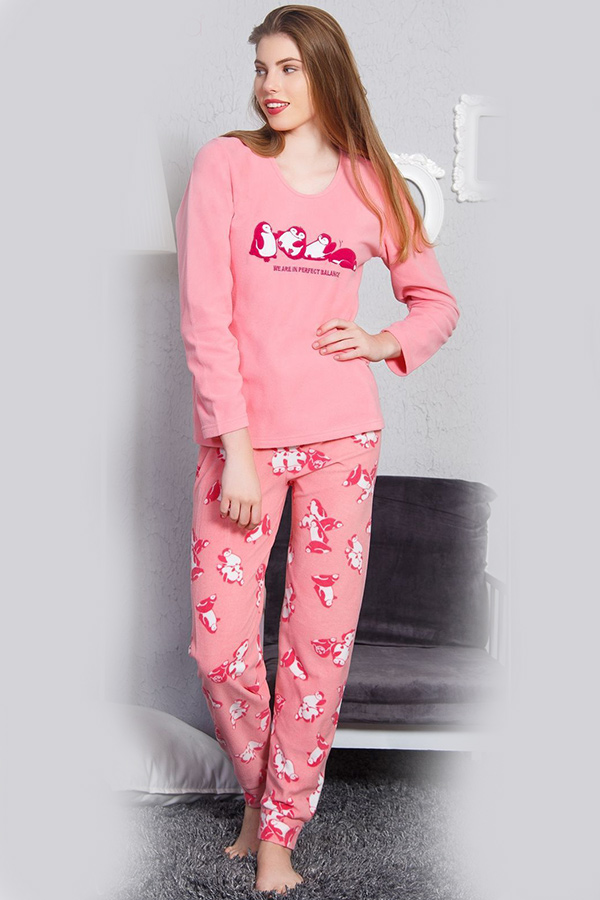 Жіноча піжама штани на манжетах кофта довгий рукав флісова купити в Україні