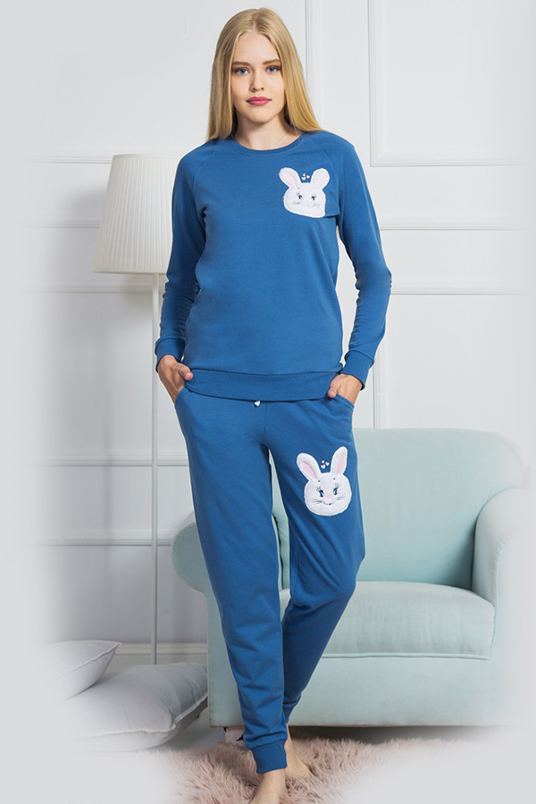 Жіноча піжама штани на манжетах кофта довгий рукав на байці купити в Україні