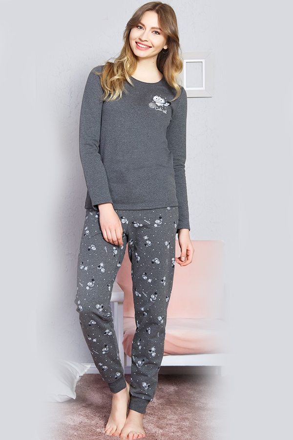 Жіноча піжама штани на манжетах кофта довгий рукав на байці купити в Україні