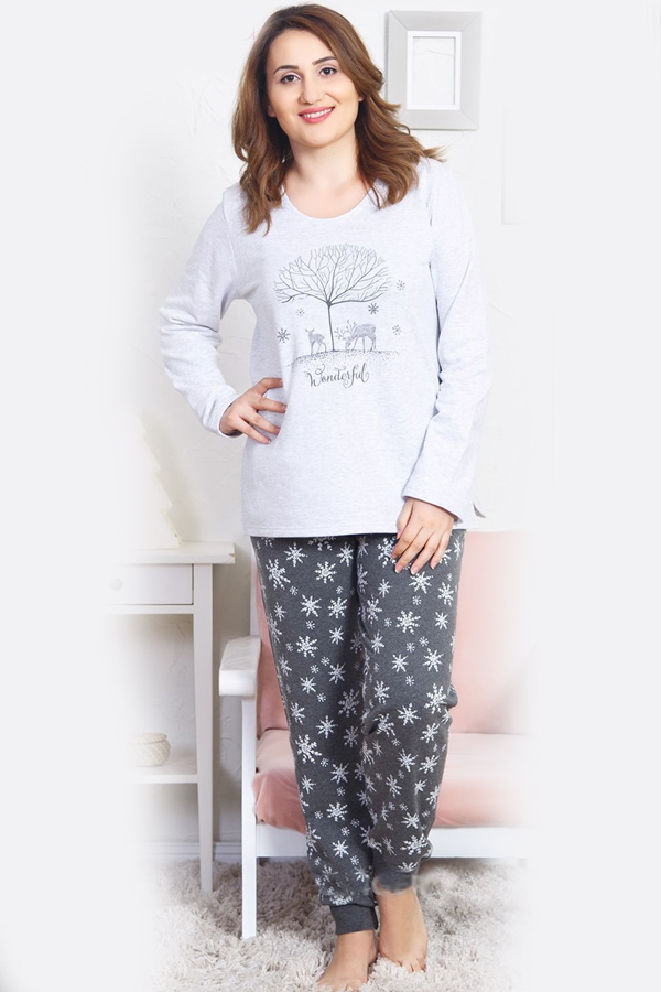Жіноча піжама штани на манжетах кофта довгий рукав на байці купити в Україні