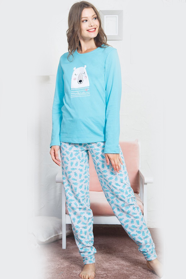 Жіноча піжама штани на манжетах кофта довгий рукав на байці купити в Україні