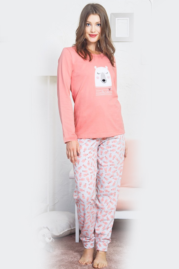 Жіноча піжама штани на манжетах кофта довгий рукав на байці купити в Україні