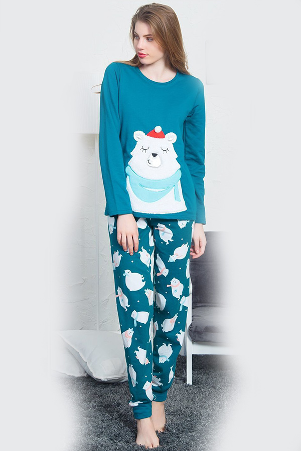 Жіноча піжама штани на манжетах кофта довгий рукав на байці купити в Україні