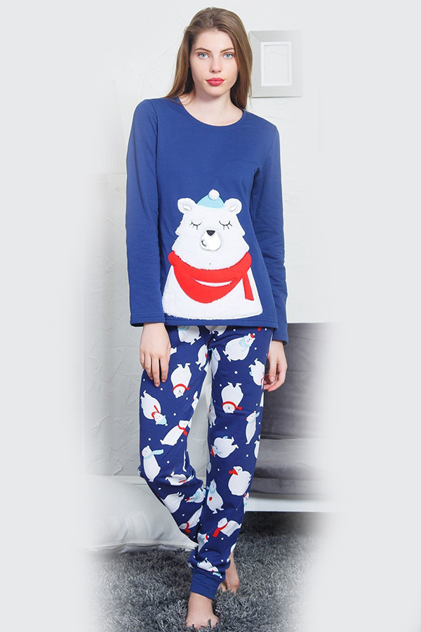 Жіноча піжама штани на манжетах кофта довгий рукав на байці купити в Україні