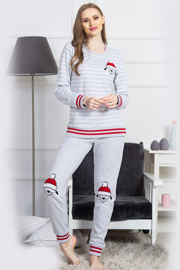 Жіноча піжама штани на манжетах кофта довгий рукав на байці купити в Україні