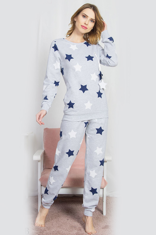 Жіноча піжама штани на манжетах кофта довгий рукав на байці купити в Україні