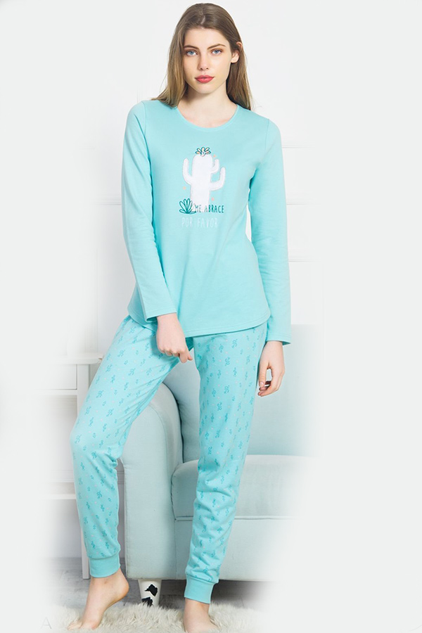Жіноча піжама штани на манжетах кофта довгий рукав на байці купити в Україні