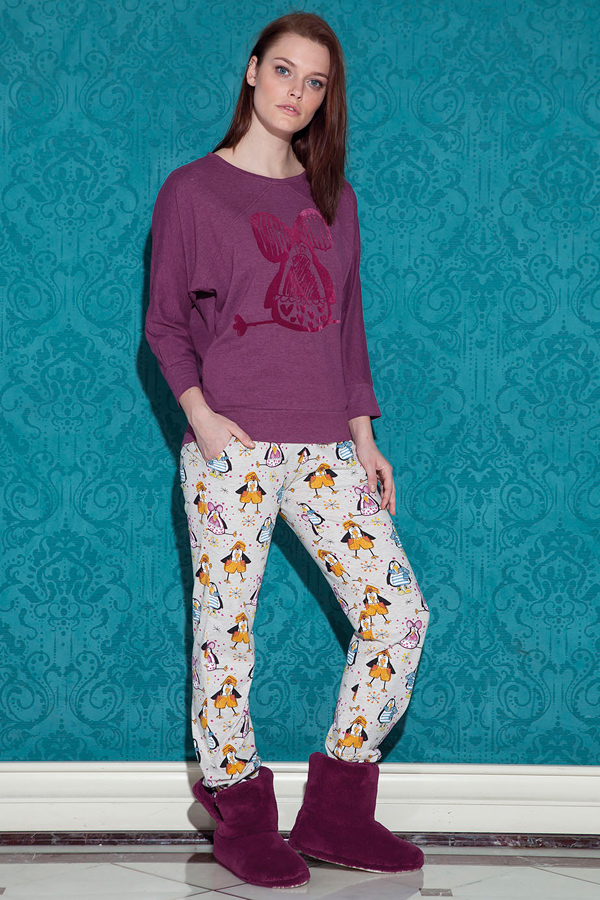 Жіноча піжама штани на резинці кофта довгий рукав купити в Україні