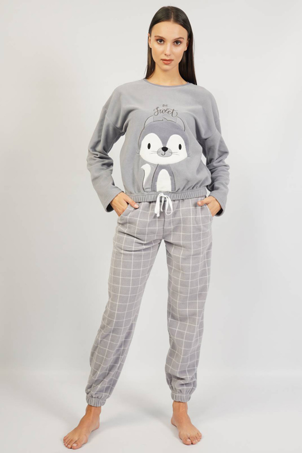 Жіноча піжама штани на резинці кофта довгий рукав флісова купити в Україні