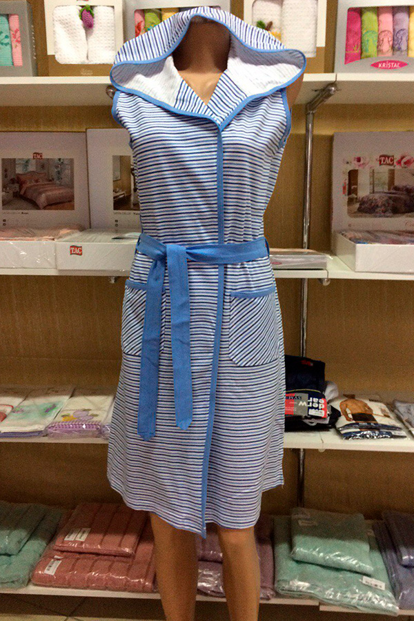 Жіночий халат без рукав на запах з капюшоном купити в Україні