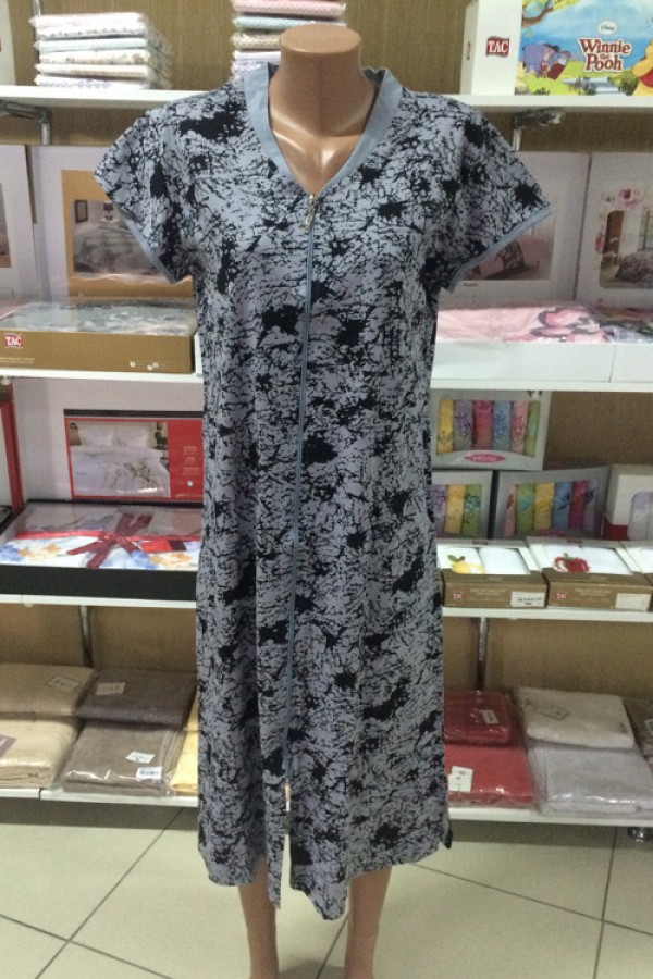 Жіночий халат короткий рукав на блискавці сірий купити в Україні