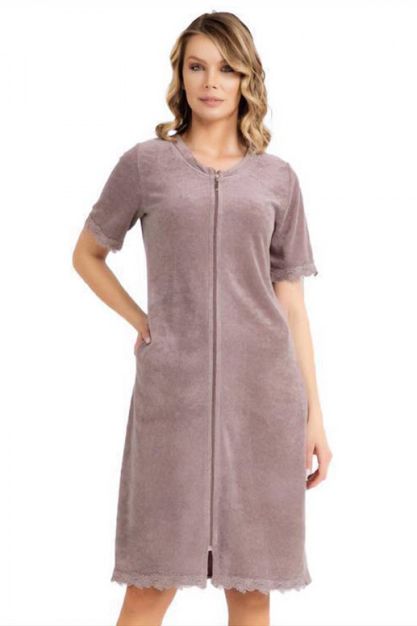Жіночий халат на блискавці короткий рукав тонка махра купити в Україні