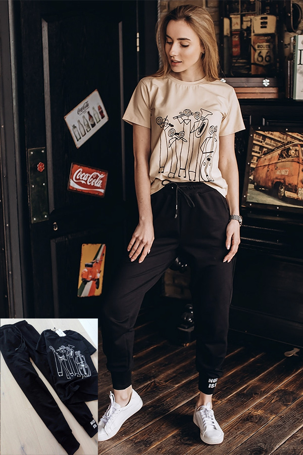 Жіночий костюм прогулянковий штани футболка короткий рукав чорна купити в Україні